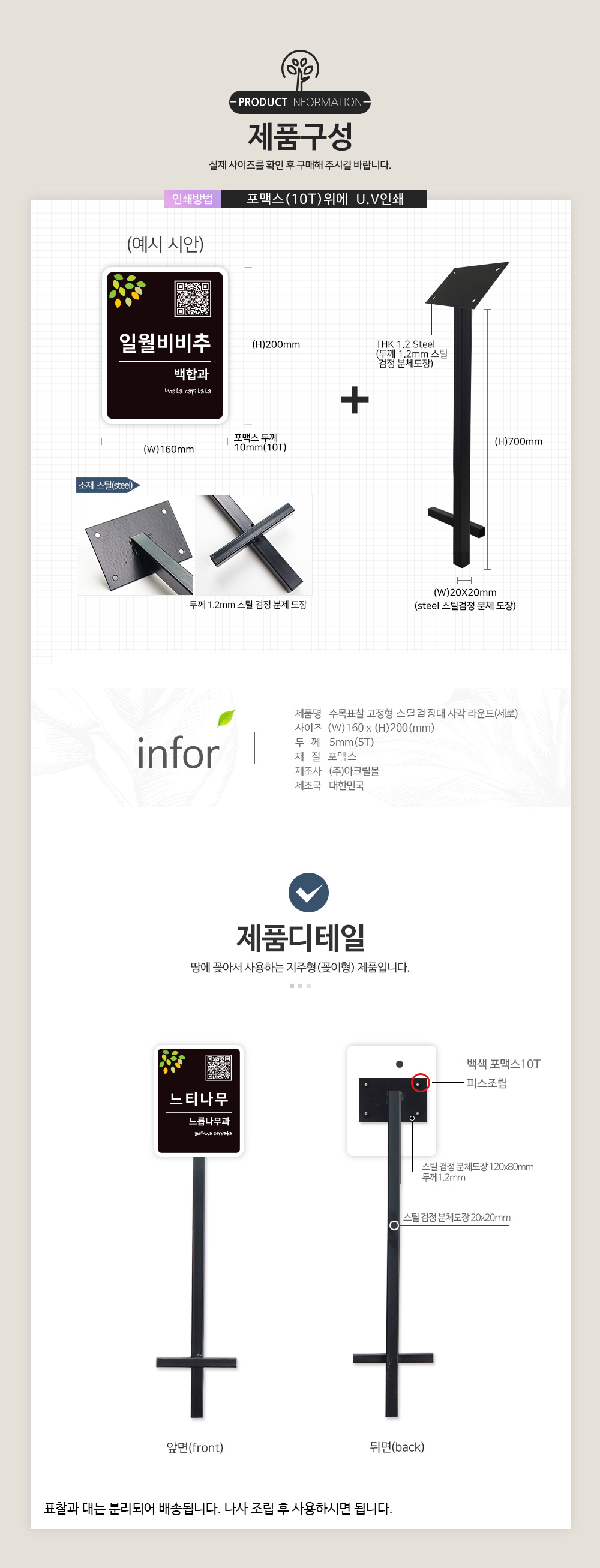 • 수목표찰 고정형 160x200 사각라운드 세로 스틸검정 꽂이형