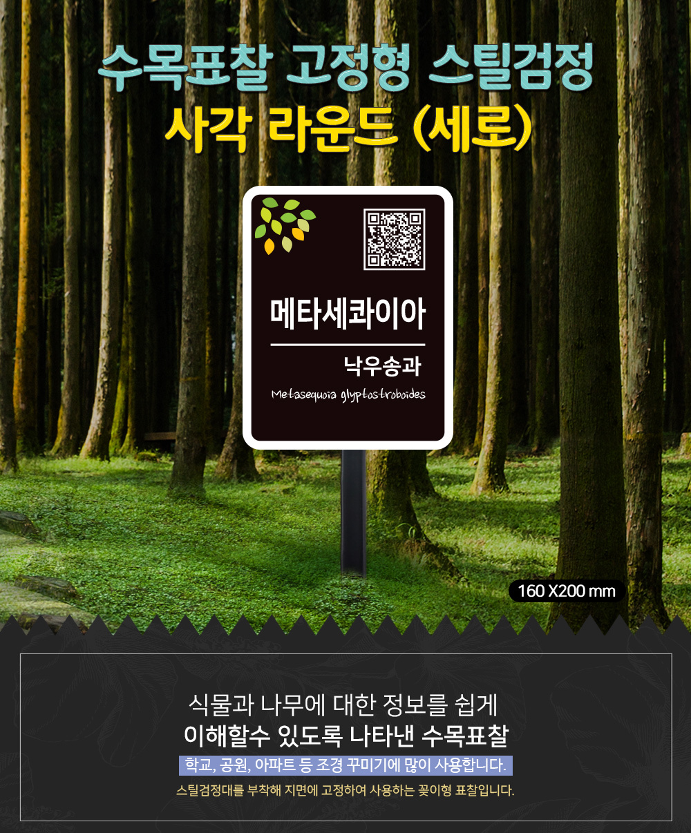 수목표찰 고정형 160x200 사각라운드 세로 스틸검정 꽂이형