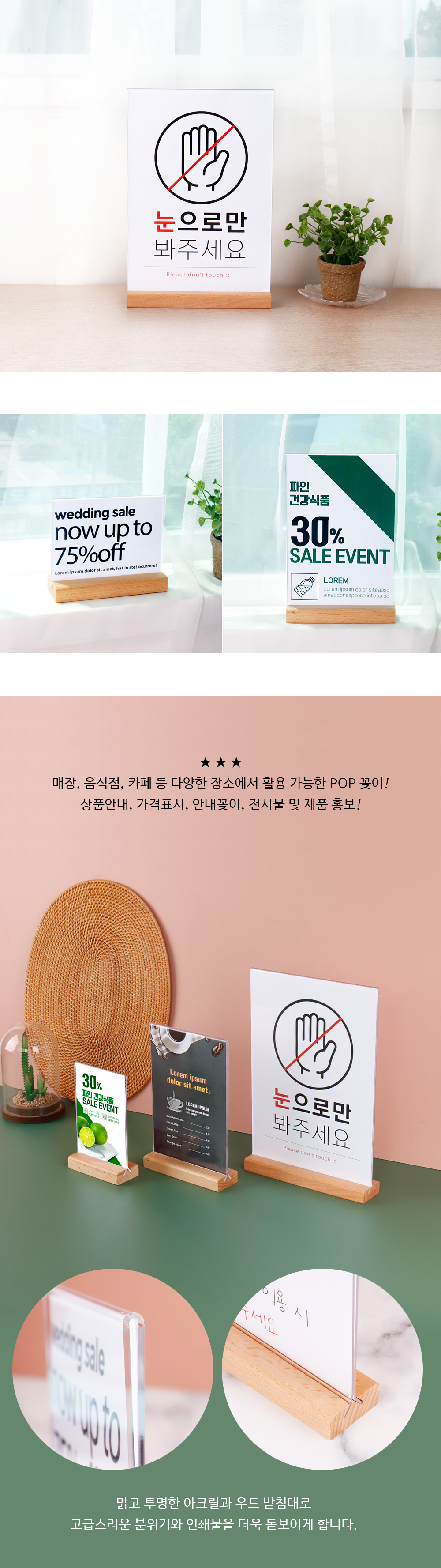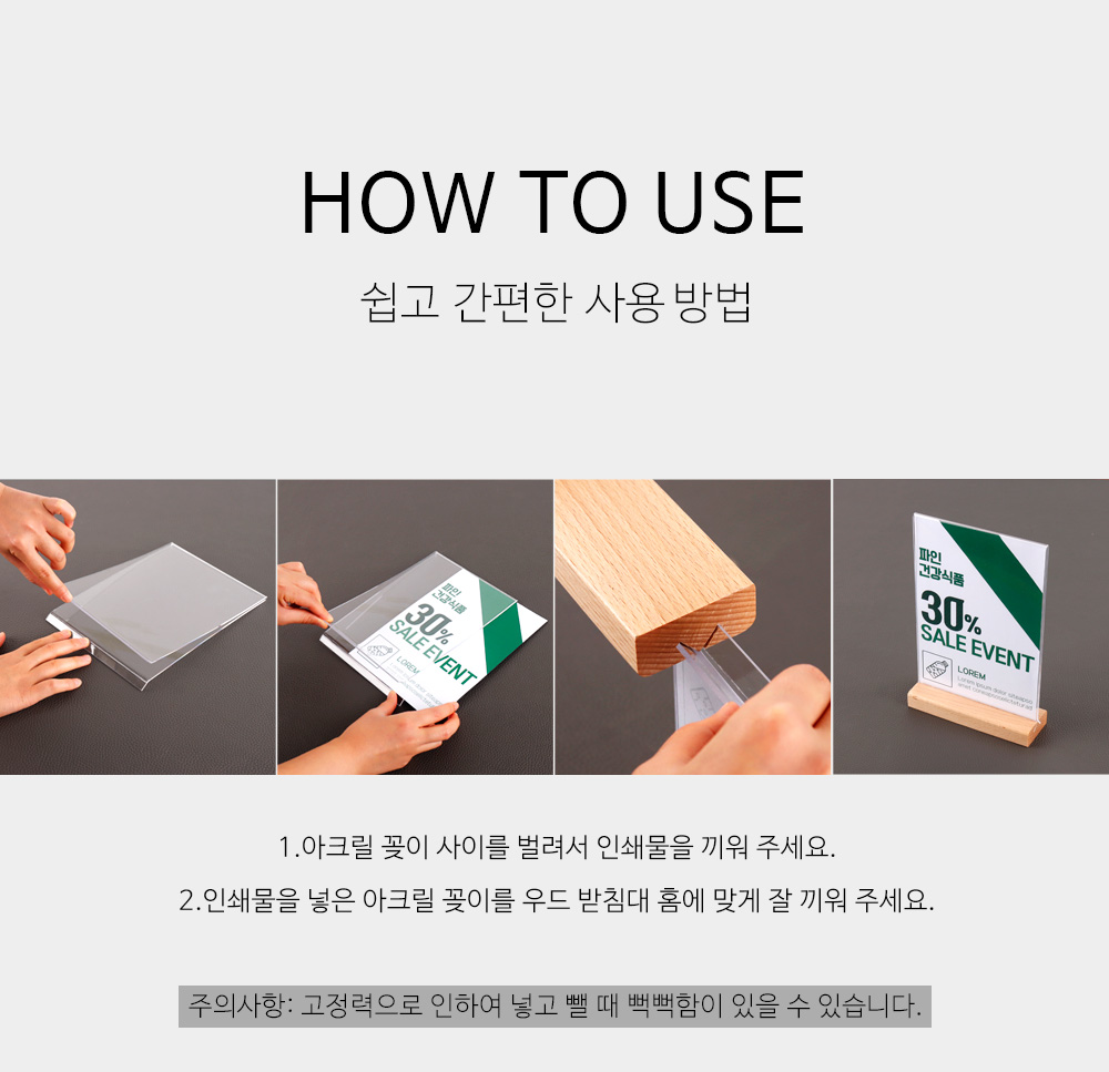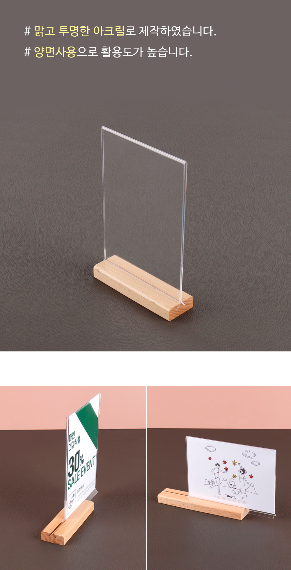 T자형 꽂이 우드 POP A4 A5 A6 스탠드 양면 메뉴판