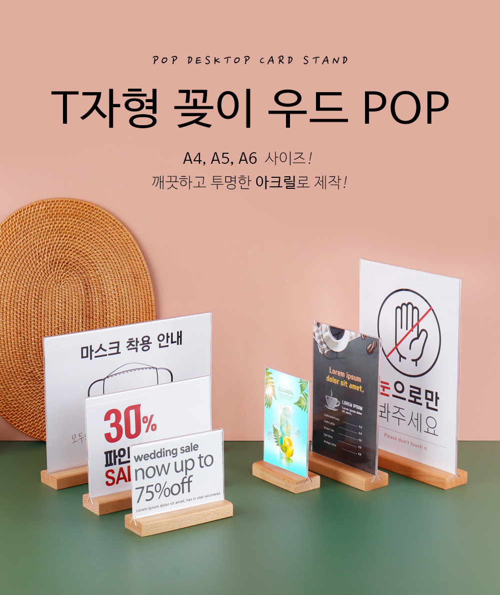 • T자형 꽂이 우드 POP A4 A5 A6 스탠드 양면 메뉴판
