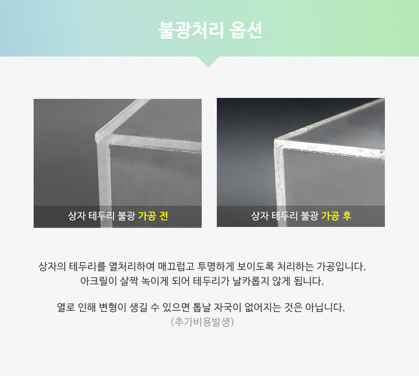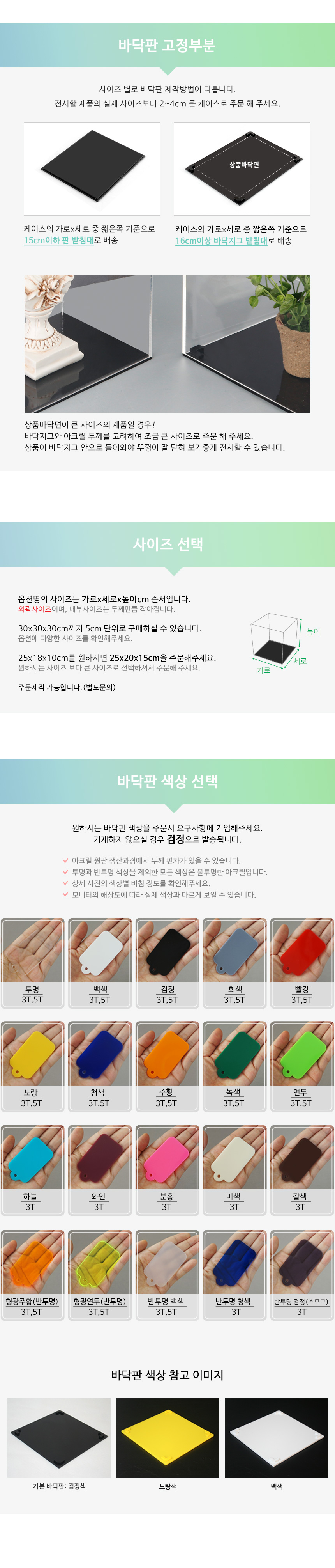 -고객변심으로 인한 반품배송비(초도배송비+회수배송비)는 모두 구매자님이 부담하셔야 합니다. #.조립을 시작한 경우나 상품을 사용하신 경우에는 불량이라도 반품/교환/환불 불가 #.확실한 파손&성형불량이 아닌 이상 포장이나 보호비닐을 제거한 후에는 교환 반품 불가 (아크릴 보호비닐을 제거한 후에는 사용하신 것으로 간주합니다.) |